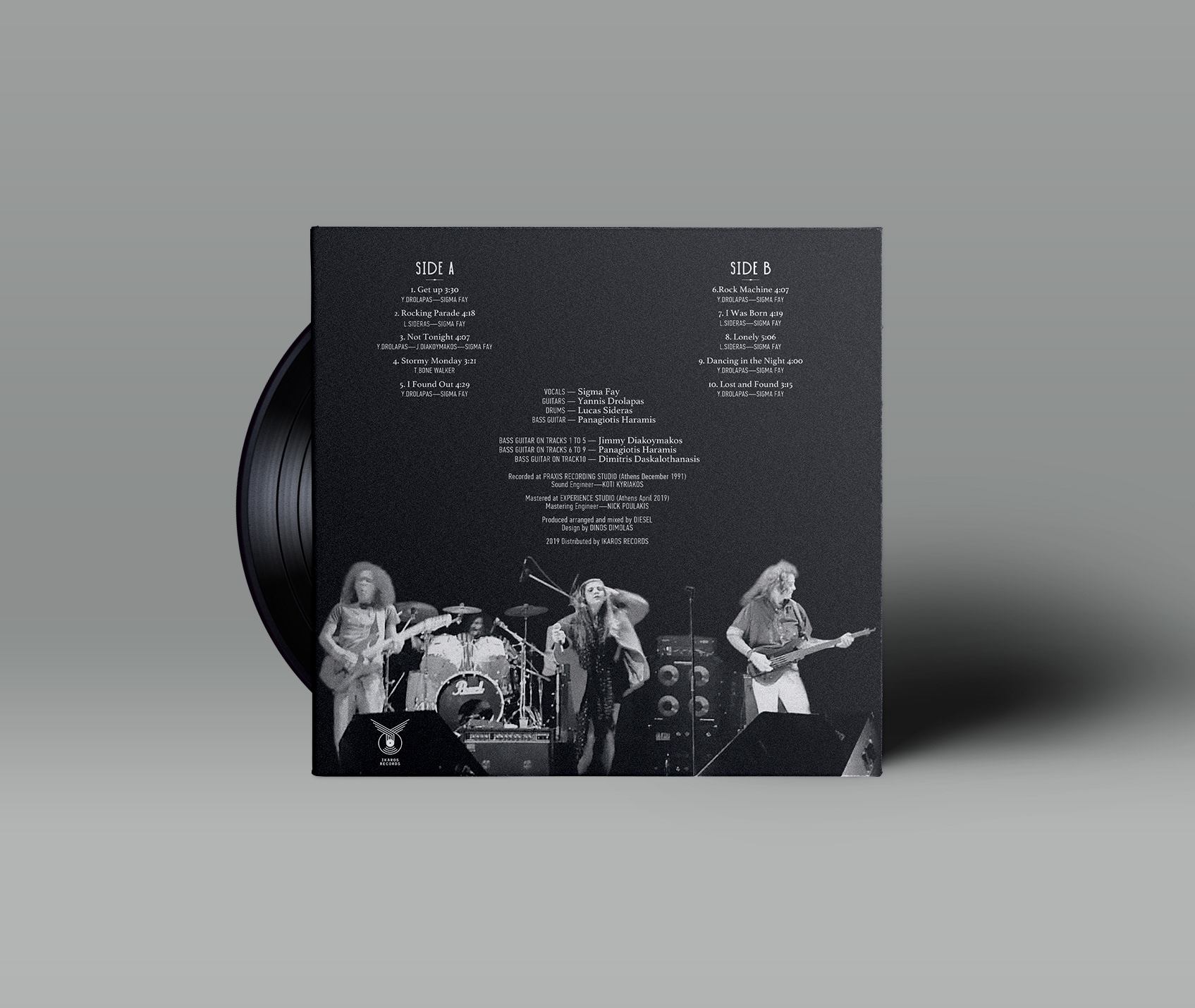 Artwork for the reissue of Diesel's album "Refuelled". Diesel is a band formed by the legendary Lucas Sideras (Aphrodite’s Child), Sigma Fay, together with Jimmys Diakoymakos and Giannis Drolapas.